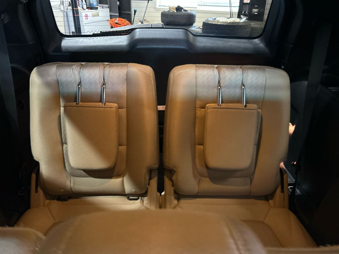 Third-row seatback upholstery: Carpet third-row seatback upholstery