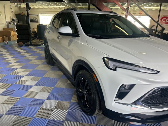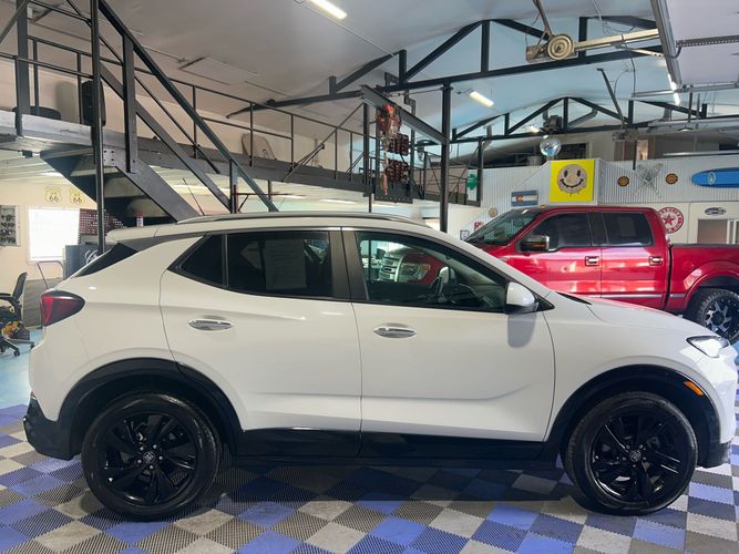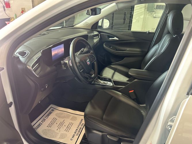 The 2024 Buick Encore GX is a compact SUV featuring a 1.3L 3-cylinder turbocharged engine paired with a smooth 9-speed automatic transmission. This AWD model offers excellent fuel efficiency with advanced safety and comfort features, wrapped in a modern design with jet black interior trim and Olympic white exterior.